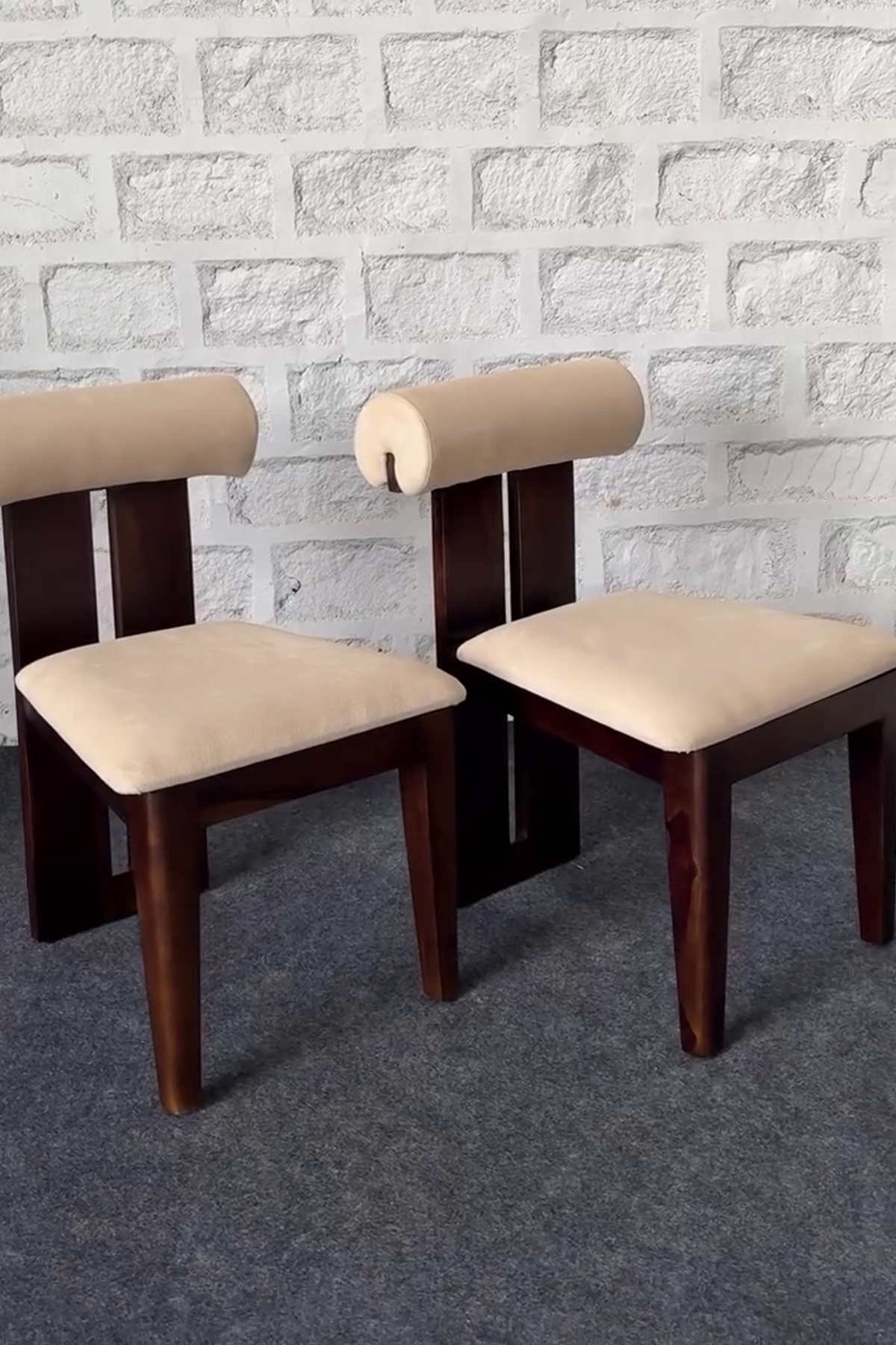 This expertly crafted wooden chair features a beautifully rounded seat and top, enhanced with Poshish upholstery for superior comfort and style. Its solid wood frame ensures durability, while the smooth curves add a refined aesthetic suitable for any sophisticated setting. Ideal for both residential and professional spaces, this chair combines timeless design with functional comfort.