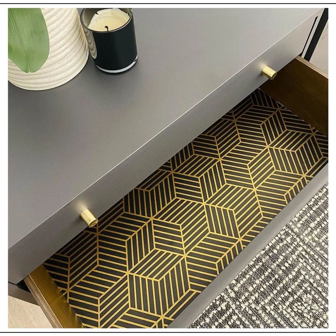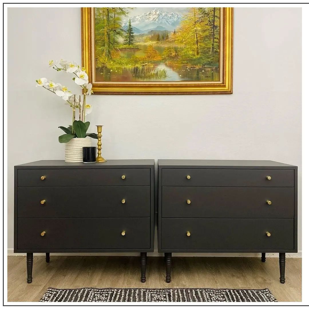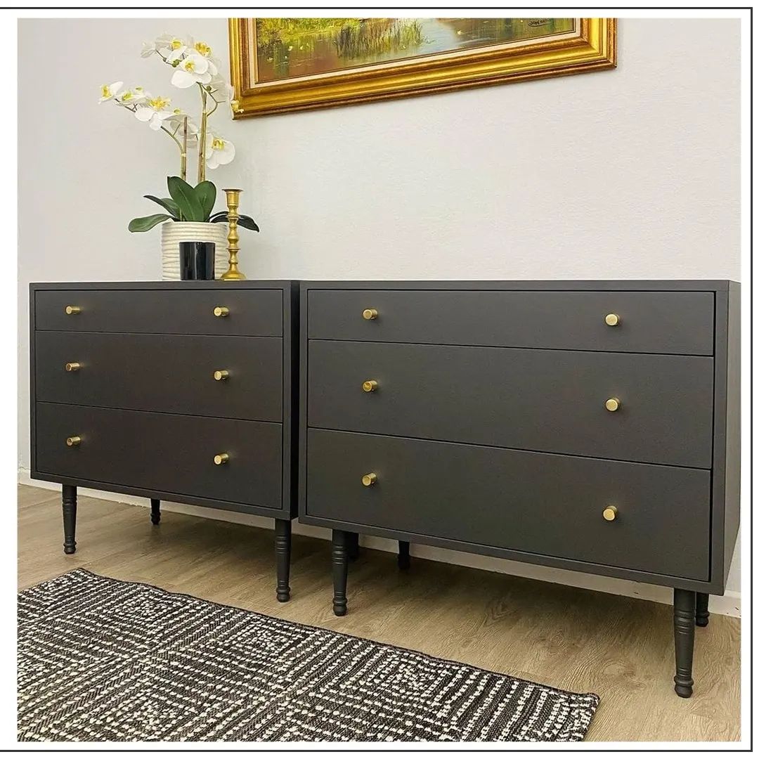 This flawless black table includes refined drawers in a matching tone, with the gold detailing adding the perfect touch.
