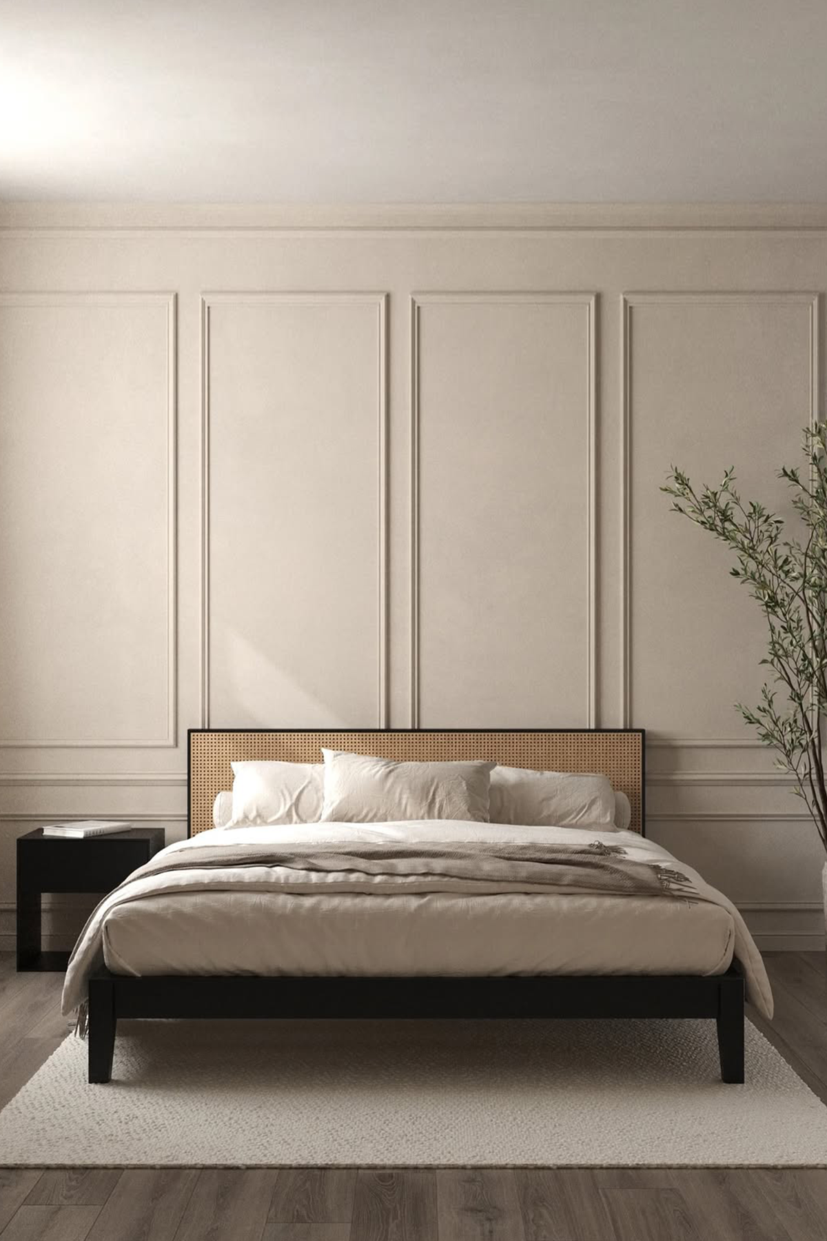 Elevate your bedroom with this contemporary platform bed, featuring a striking rattan back that combines natural texture with modern minimalism. The woven rattan headboard creates visual interest while maintaining clean lines characteristic of contemporary design. Crafted for both style and function, this bed provides sturdy support with an open frame design that maximizes floor space. The natural material brings warmth to any bedroom aesthetic, while the platform base eliminates the need for a box spring. Perfect for those seeking a sophisticated blend of organic elements and modern sensibility.
