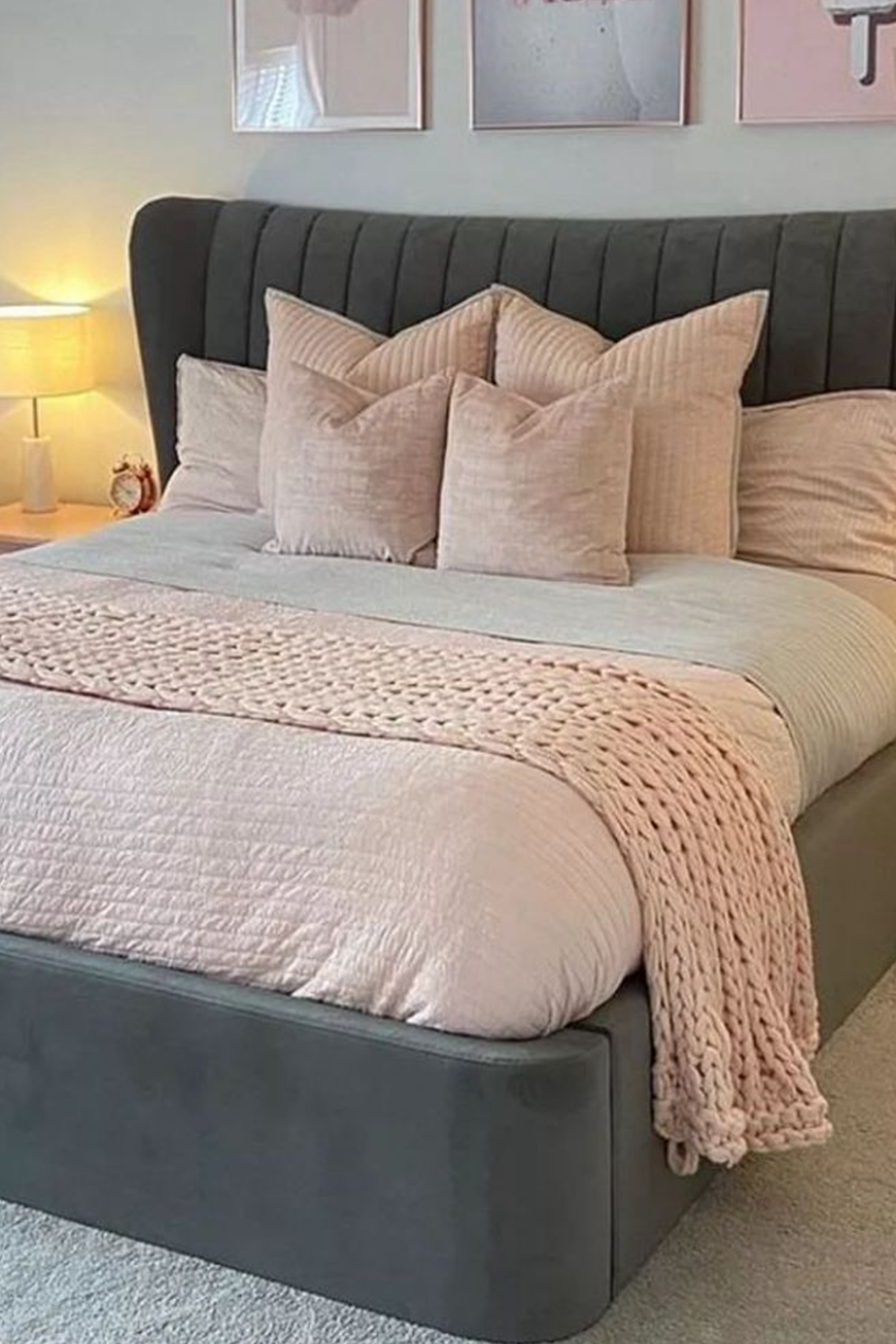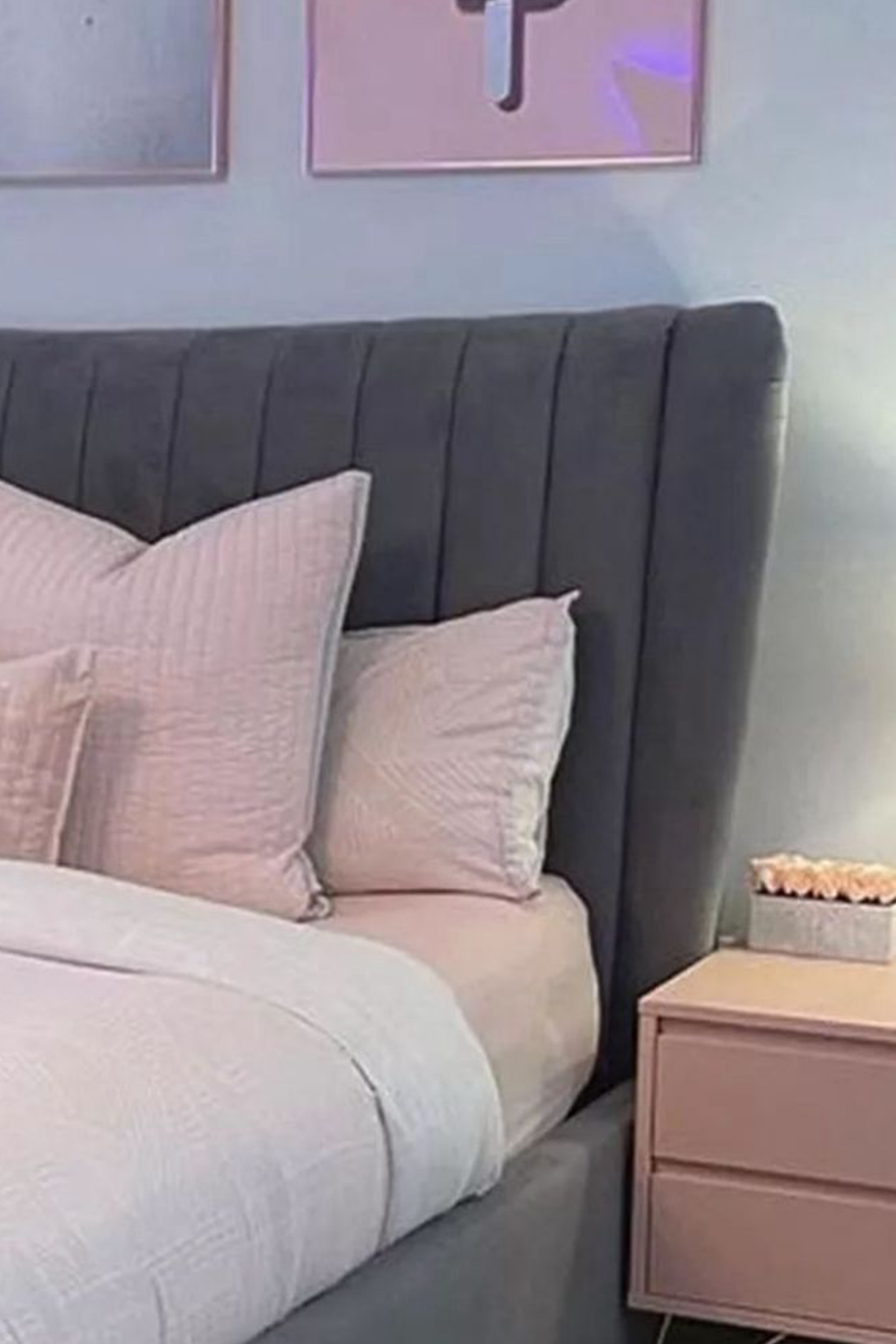 Casual and classy, this gorgeous grey bed with a cushioned headboard will give your bedroom a fresh and playful look!