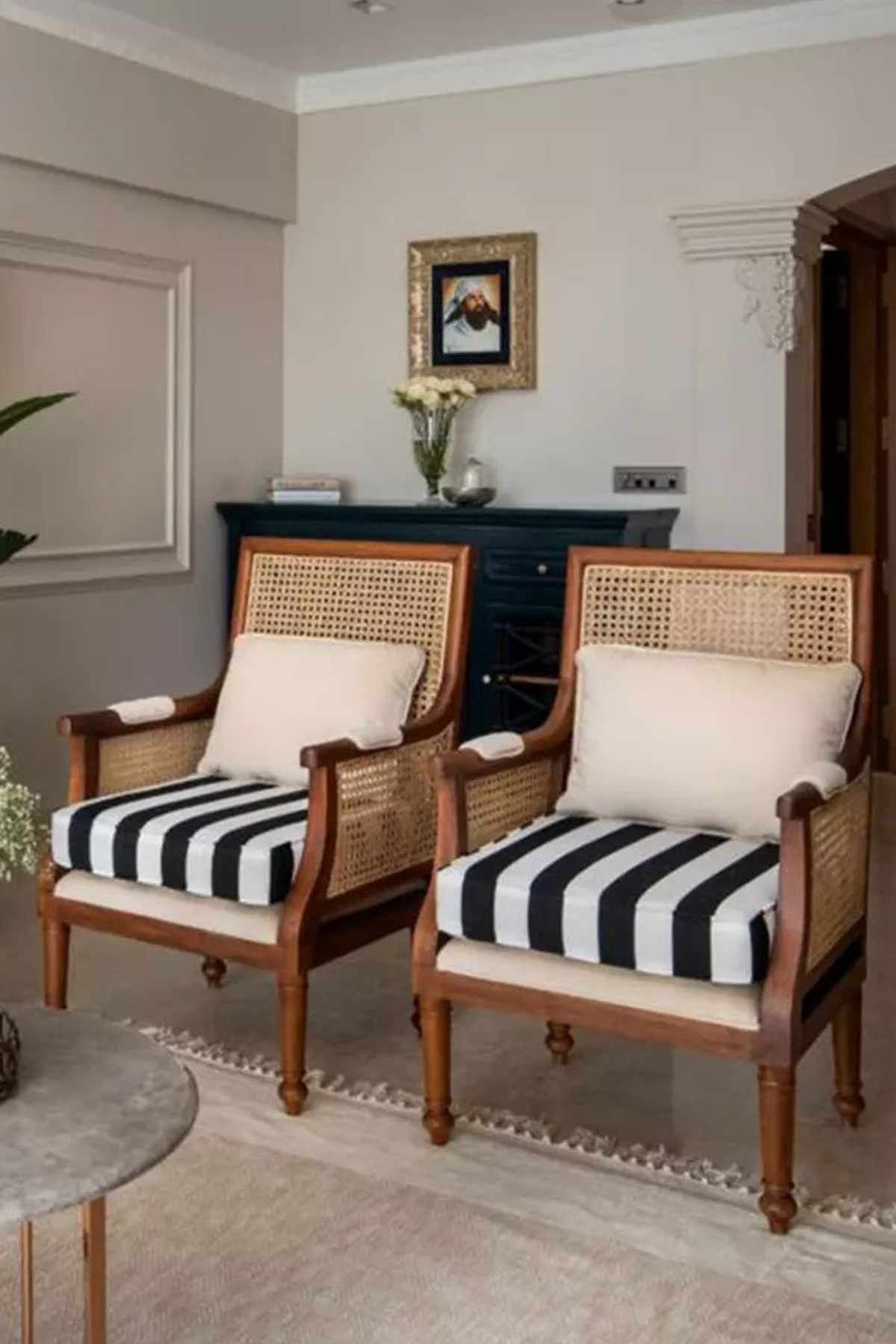 A sleek and classy two-piece set of chairs with a stylish twist! This piece of furniture inspiration elevates your living room space with grace!